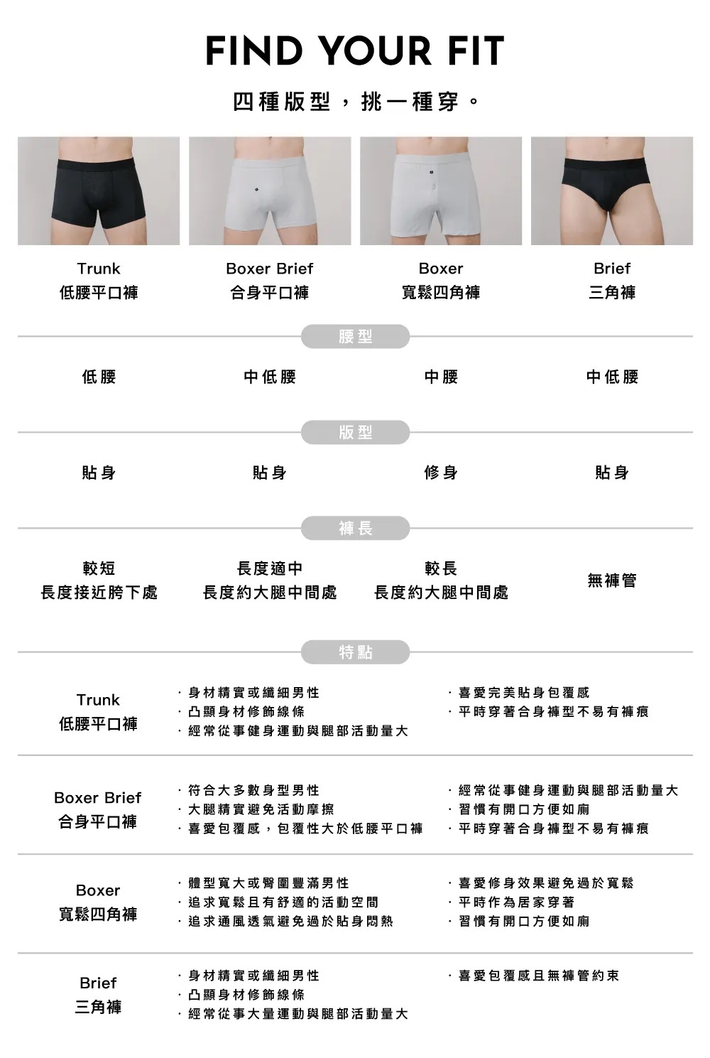 平口內褲 (Boxer Brief)適合對象: 大多數身型。