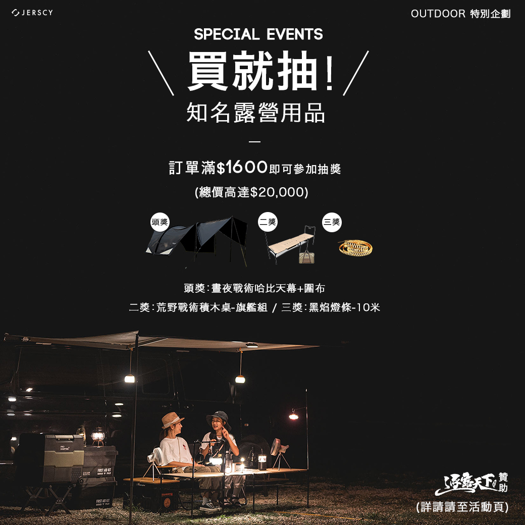 單筆訂單結帳滿$1600,即可參加逐露天下露營用品抽獎