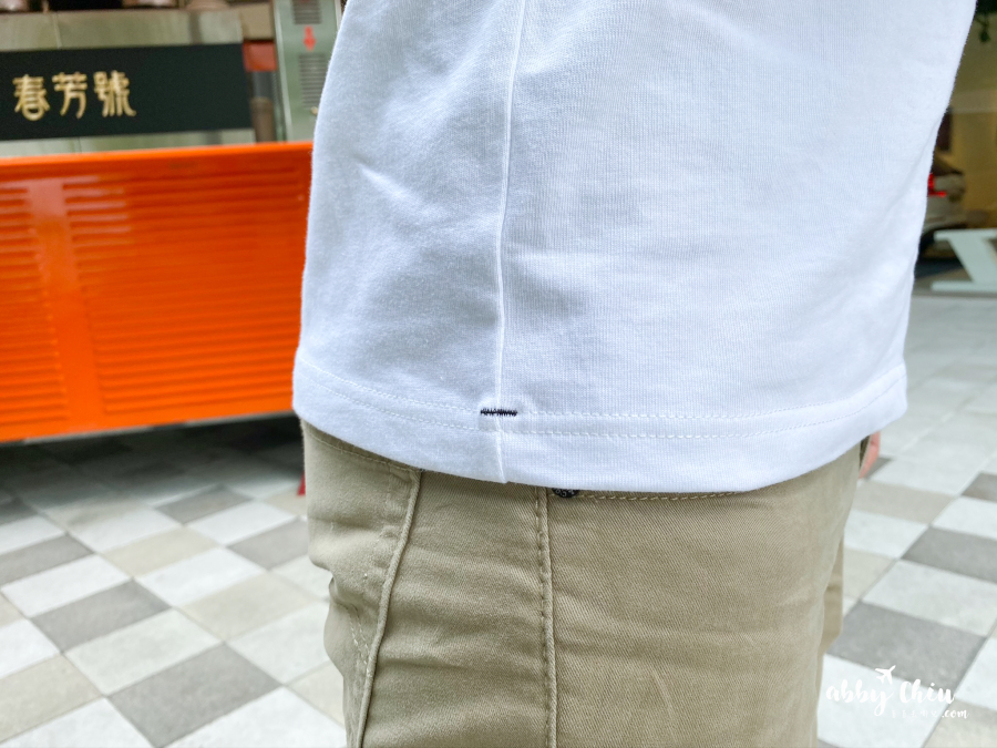 雖然是件素T,但衣服的下襬有黑色線條及洗標的小巧思,低調不張揚的細節