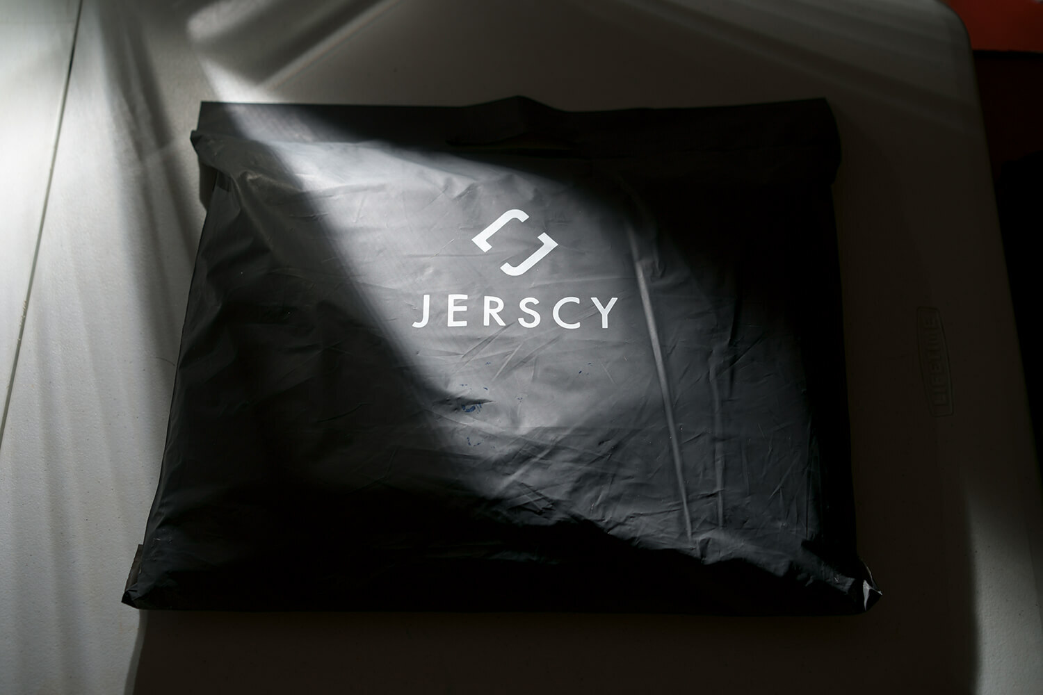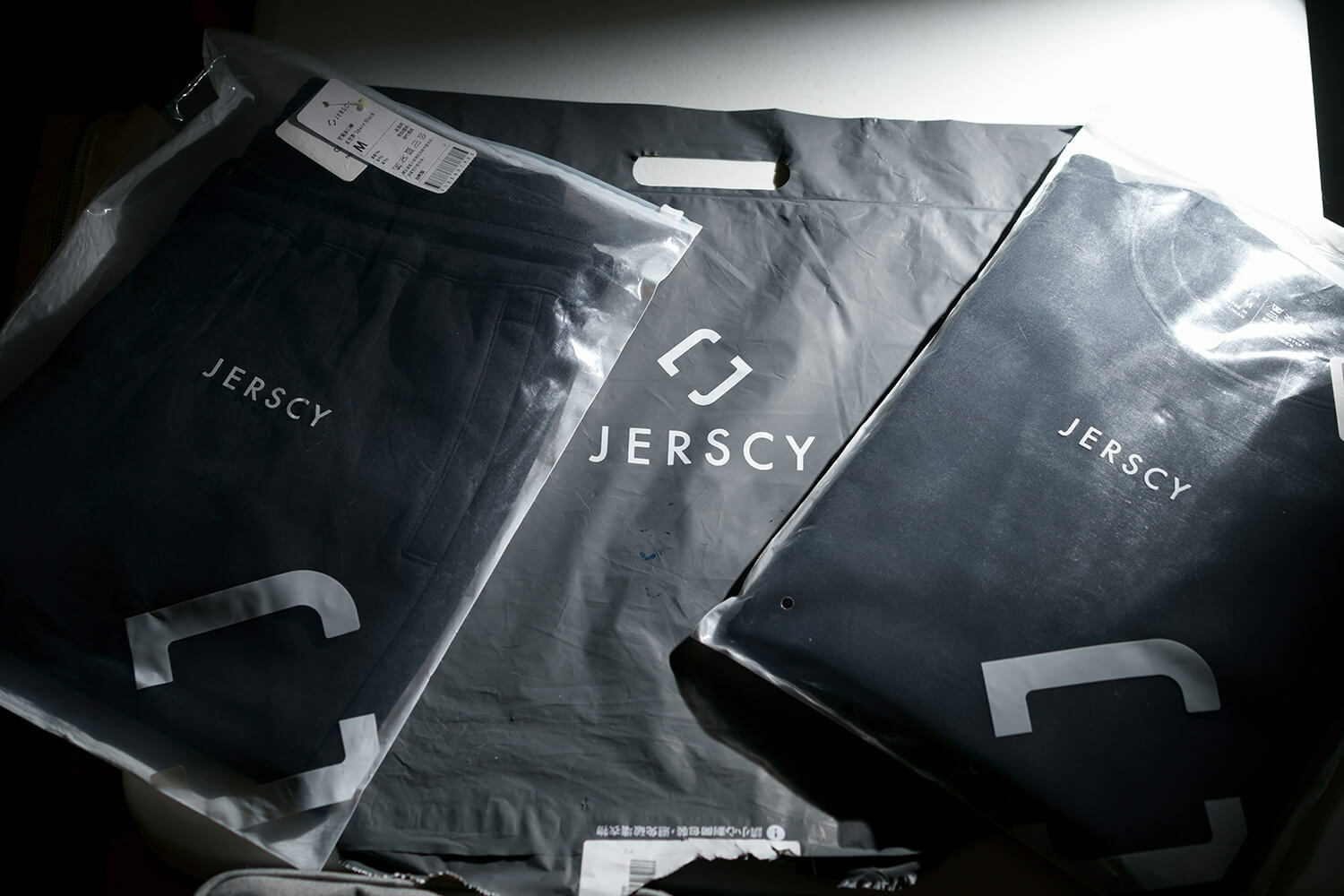 這次收到JERSCY的衣服,一樣是很有質感的包裝,深灰色的包裝上面印著JERSCY,還有一個提把可以手拿,感覺可以直接拿來送禮,很用心的包裝。