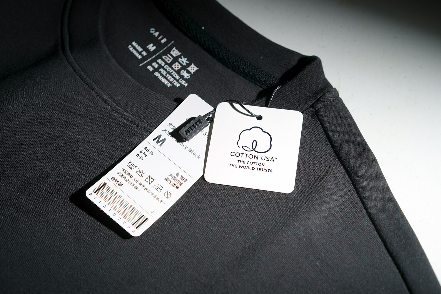 翻過來竟然是美國棉的Logo讓我很驚訝,代表他們真的是下重本在做這件衣服,摸起來的觸感也真的是很優,非常的滑順有彈性。