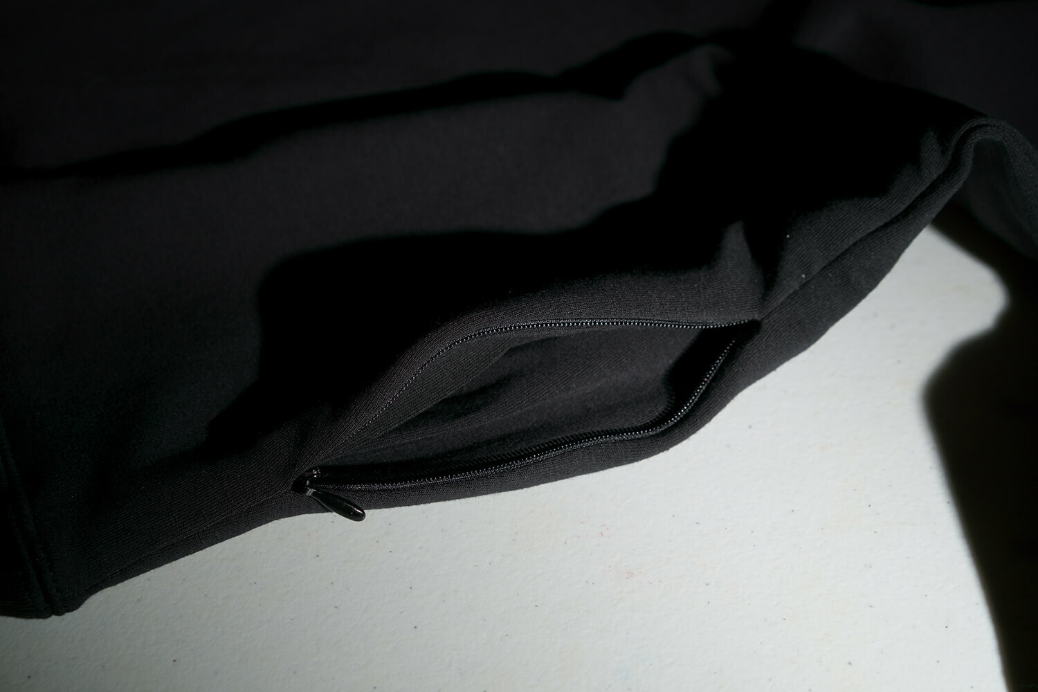 這件衣服還有個很棒的特點,就是擁有隱藏式的拉鍊口袋,不會破壞外觀的好看,同時又可以收納一些東西,真的是很方便,實際裝過口袋的容量還不小,意外地實用。