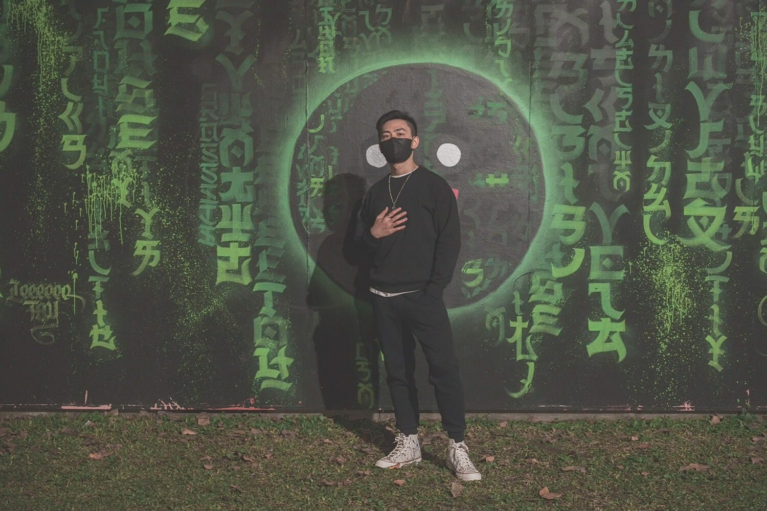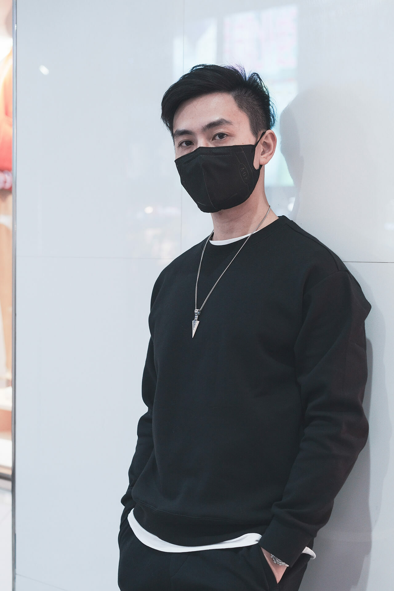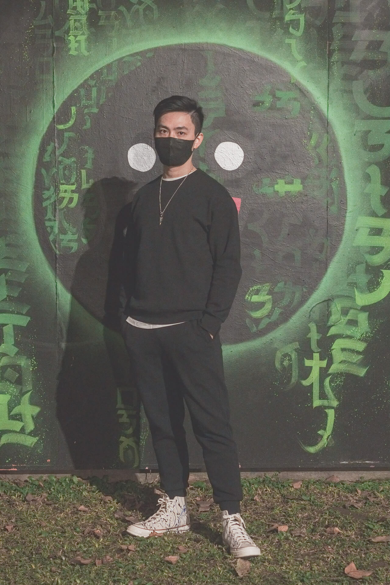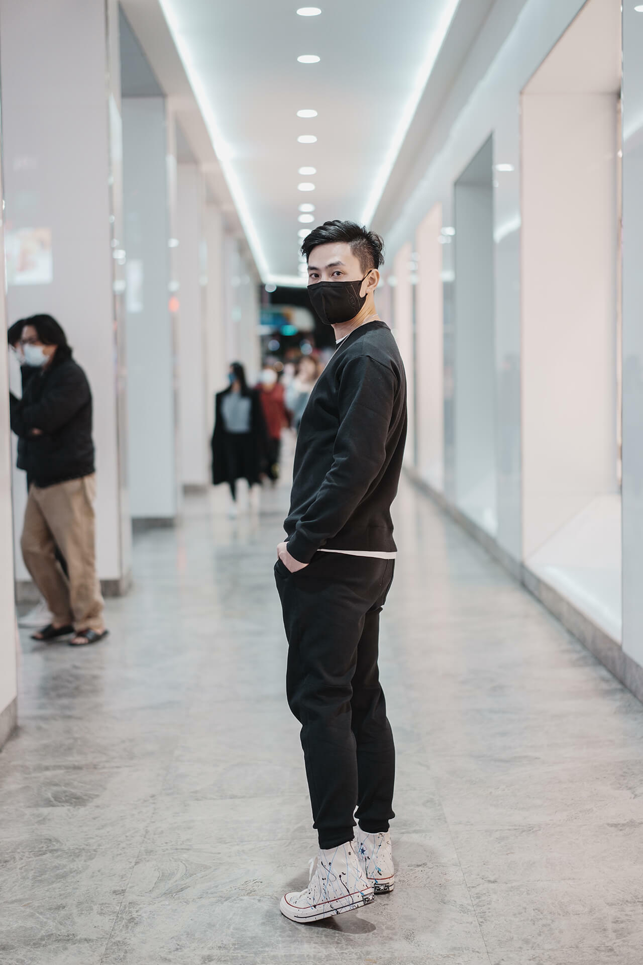 同樣一套衣服,因為上下都是全黑的,加一件內搭就可以更有層次感,這邊要注意是因為大學TEE本身有長度,所以要當內搭的白T要長版的,才比較容易露出下擺。