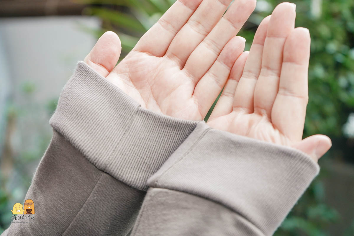 有時候比較冷,會喜歡把袖口這樣往外伸展