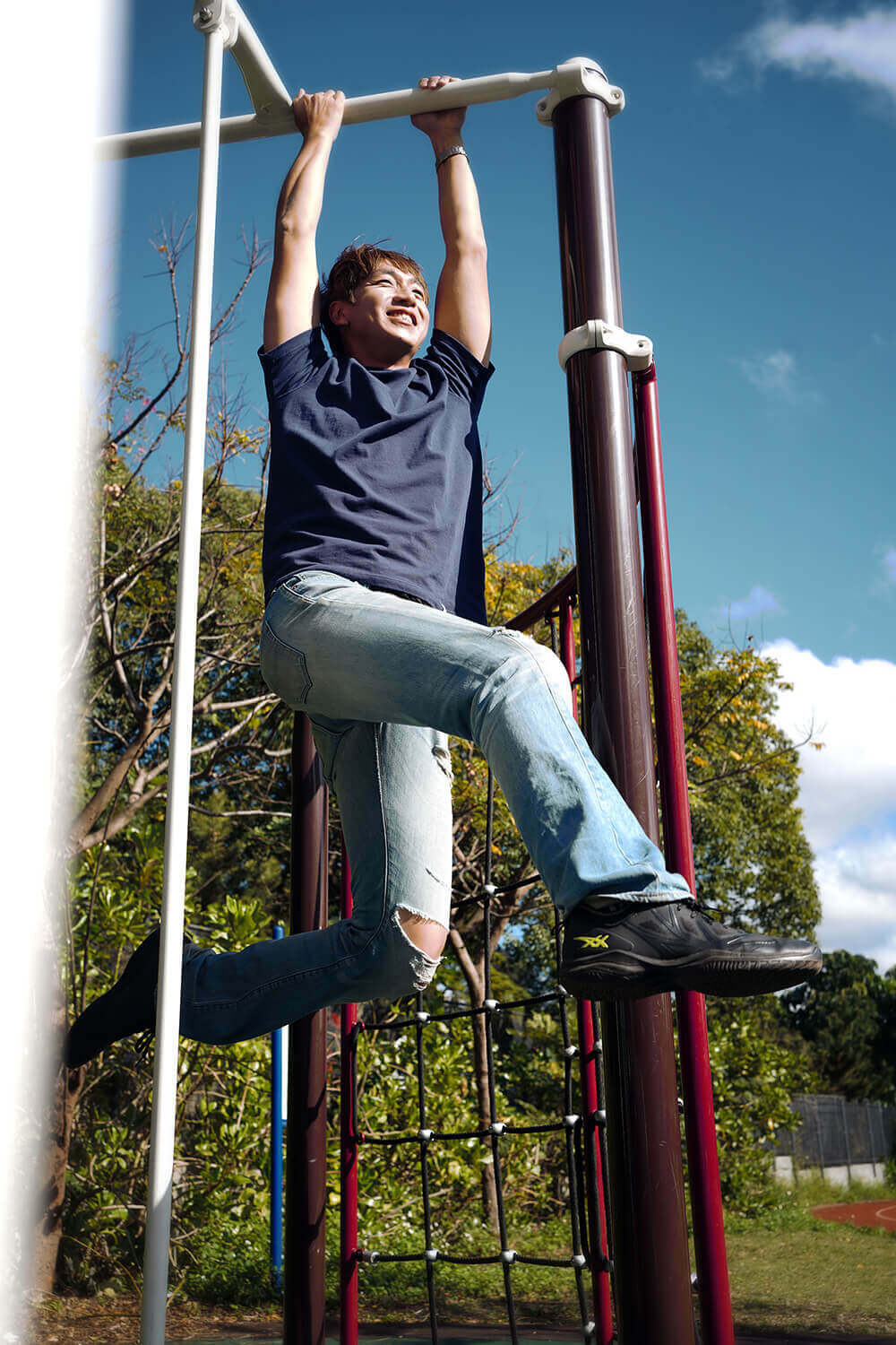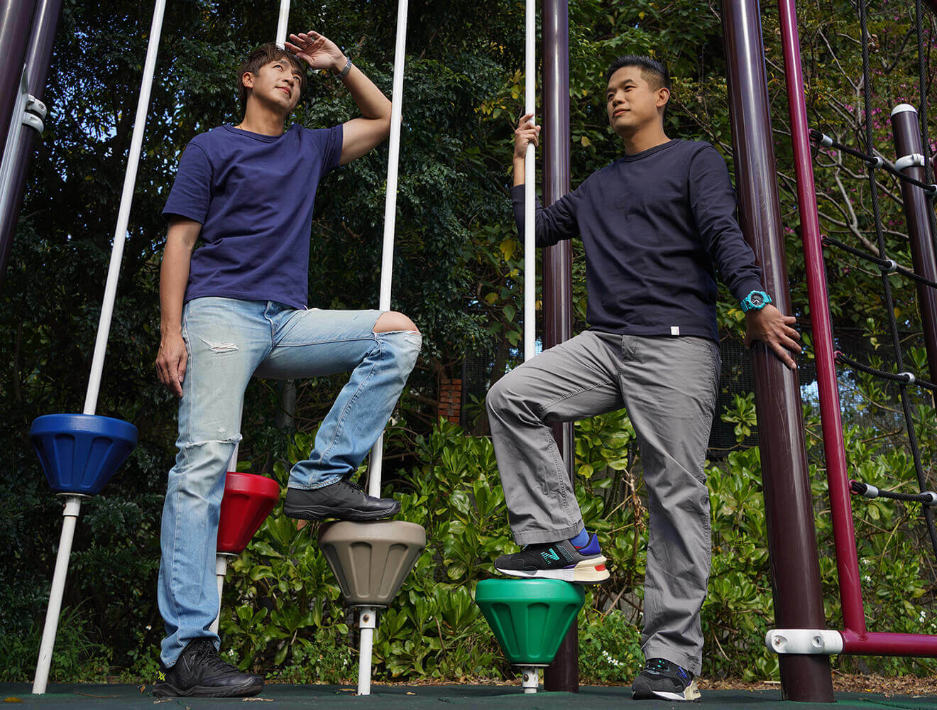 現在,就讓我們歡迎,咱們國小界門面擔當(?)且帥勁無法擋,桃花斬不完的體育老師雙帥組,親自為我們展現出,10.9oz 的重磅 T-Shirt 穿在身上,是如何帥到沒親戚、沒朋友 ( 掌聲請不要斷!)