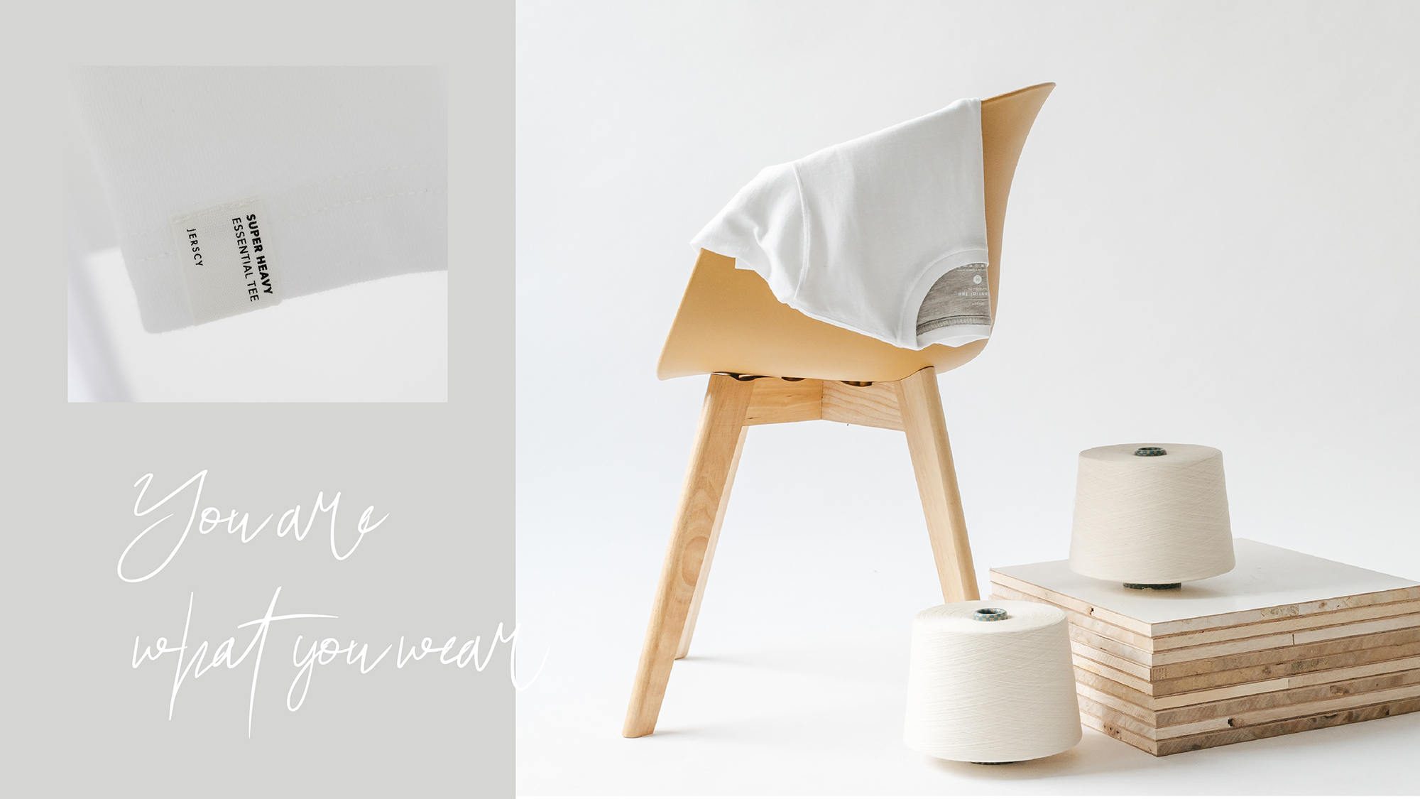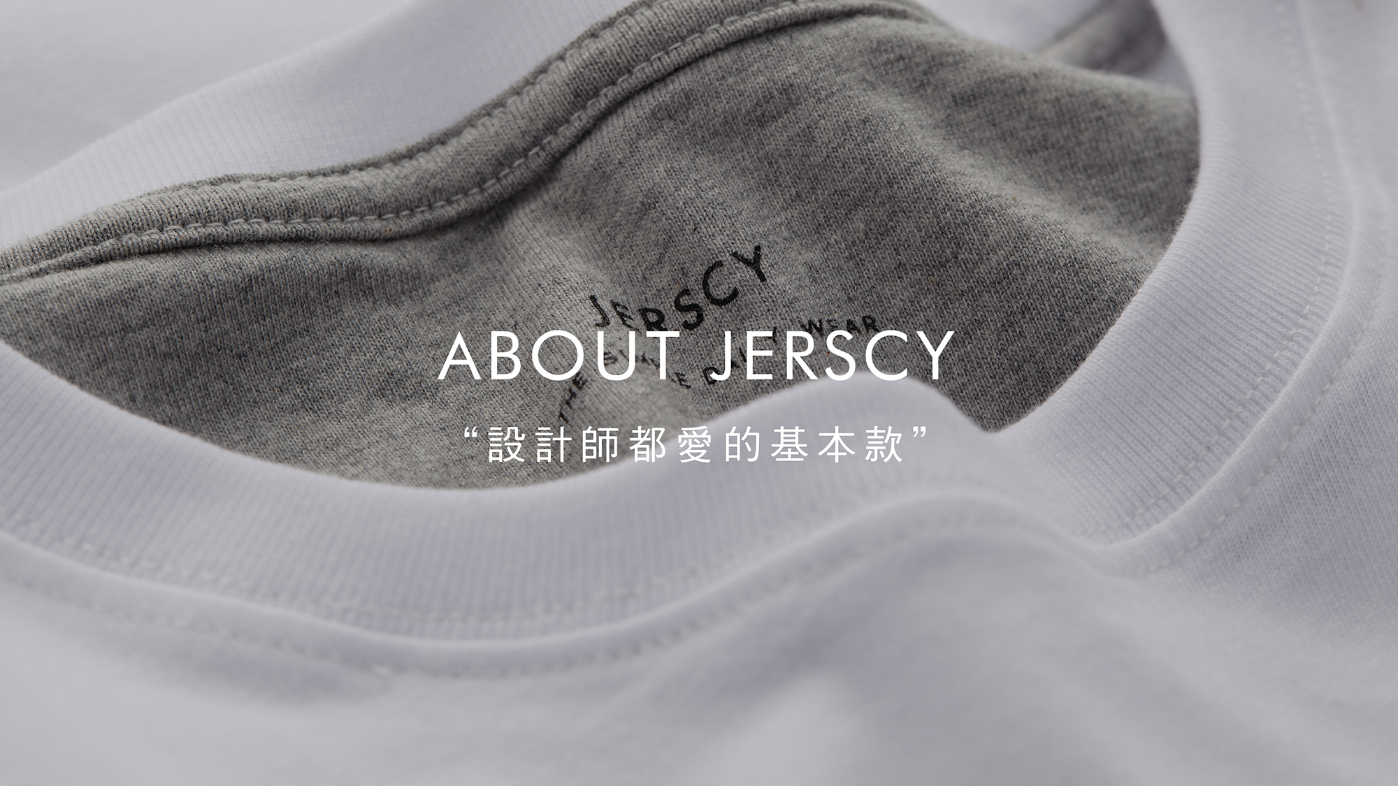 JERSCY的品牌名源自於紡織業中常見的Jersey針織布,用其中一個字母E變換為C,代表著舒適(Comfortable)和便利(Convenience),設計產品永遠以「舒適」和「實穿」為核心,實穿又包含了基本款的百搭性,以及衣服的機能性。