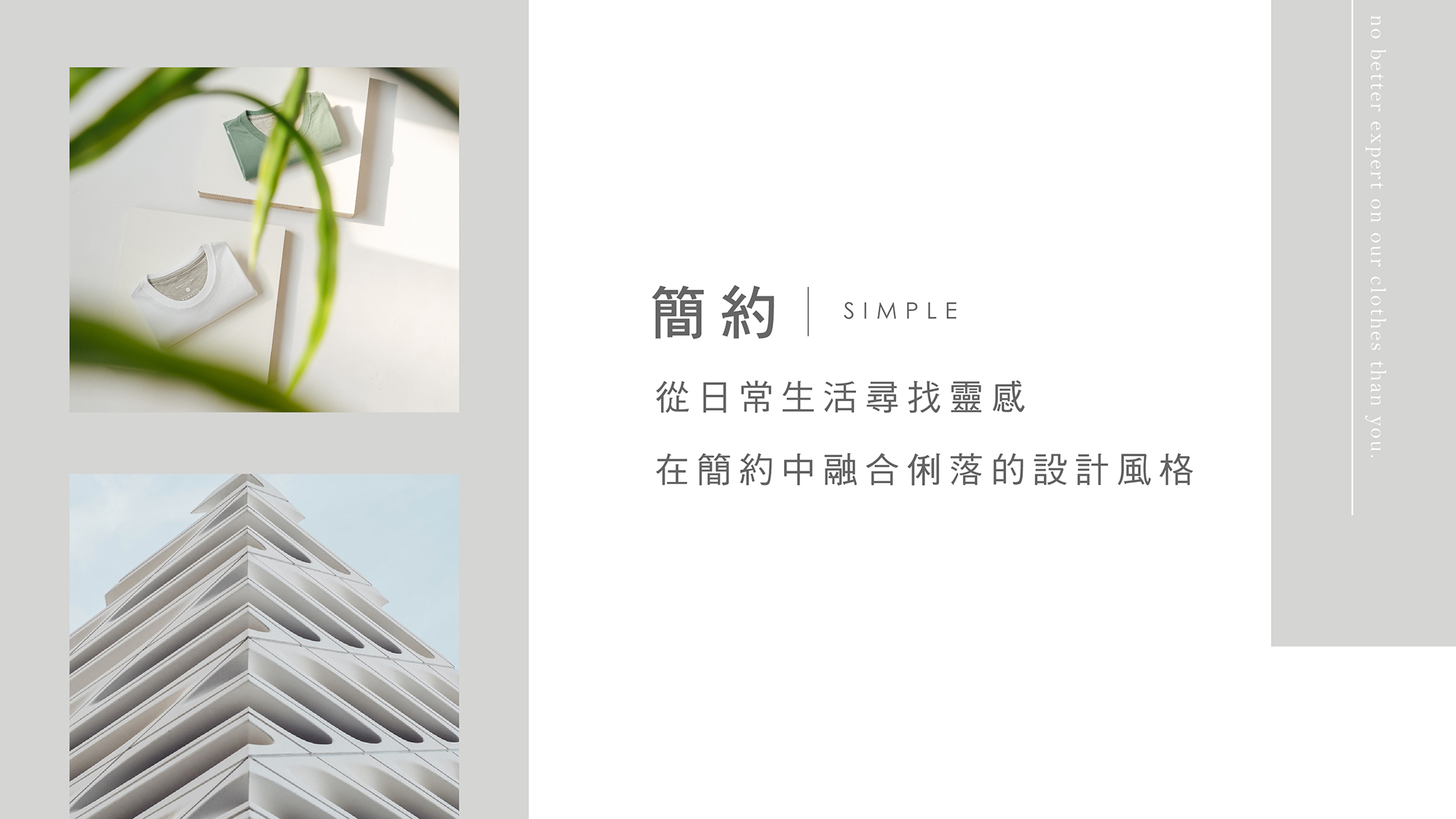 舒適與機能的設計核心應用在我們最熱愛的極簡風格再適合不過,因為比起紛雜的設計,簡約更能夠襯托出服裝的細節,例如:質料、剪裁與各種設計巧思,這是我們的強項,一直以來也都為此而不斷努力。