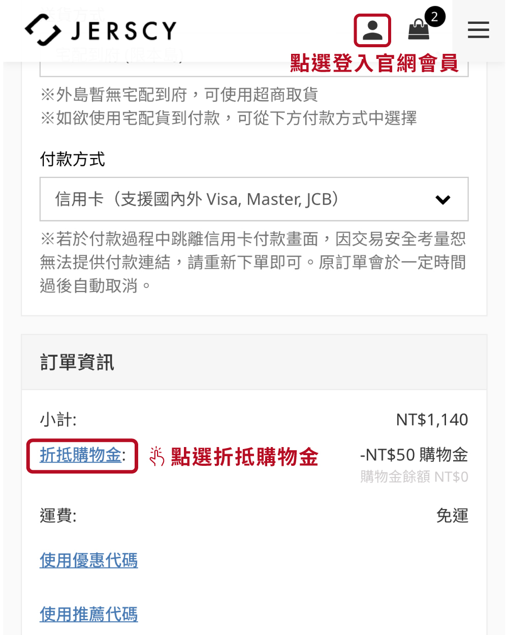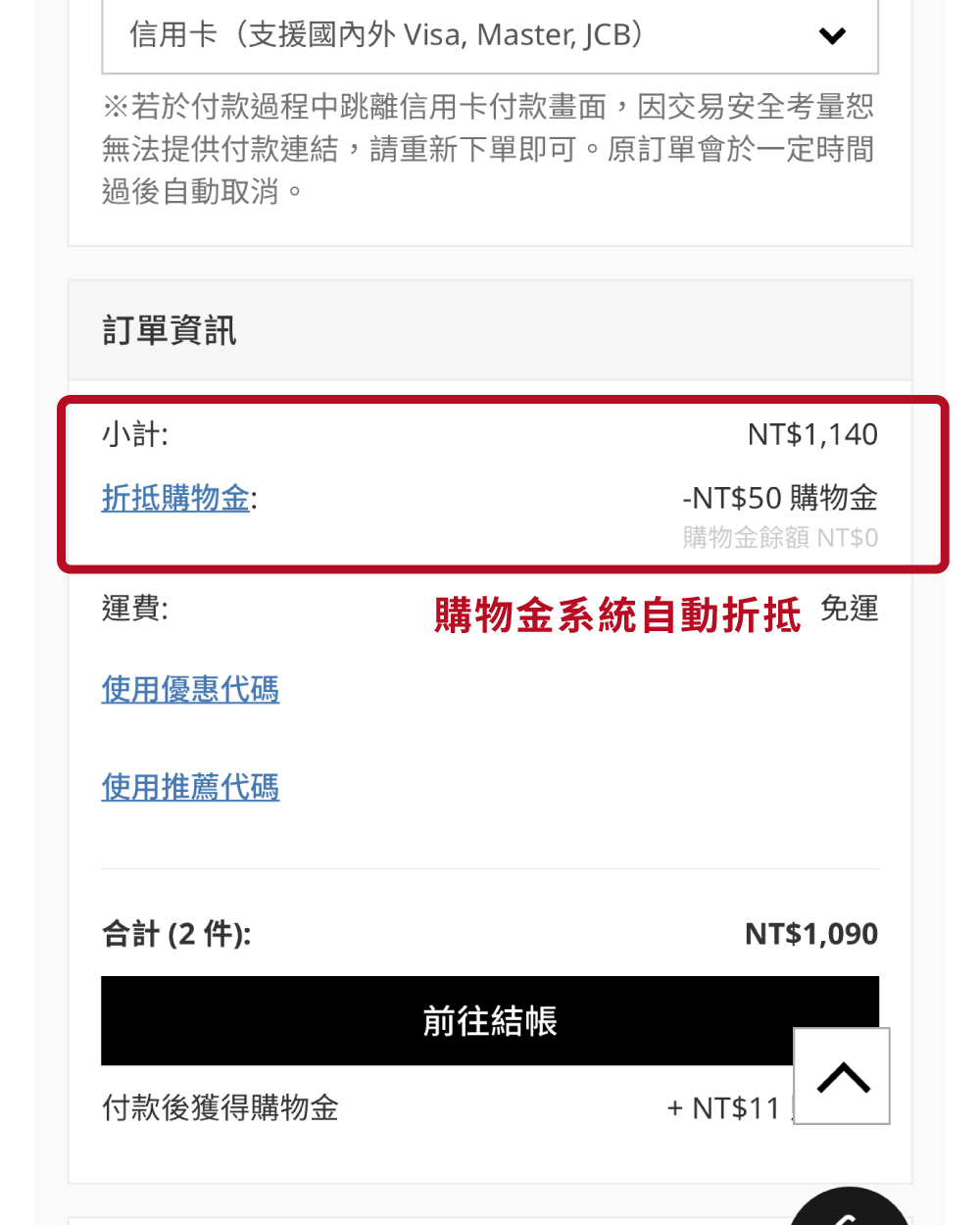 👉登入會員後結帳時會自動折抵會員裡現有購物金